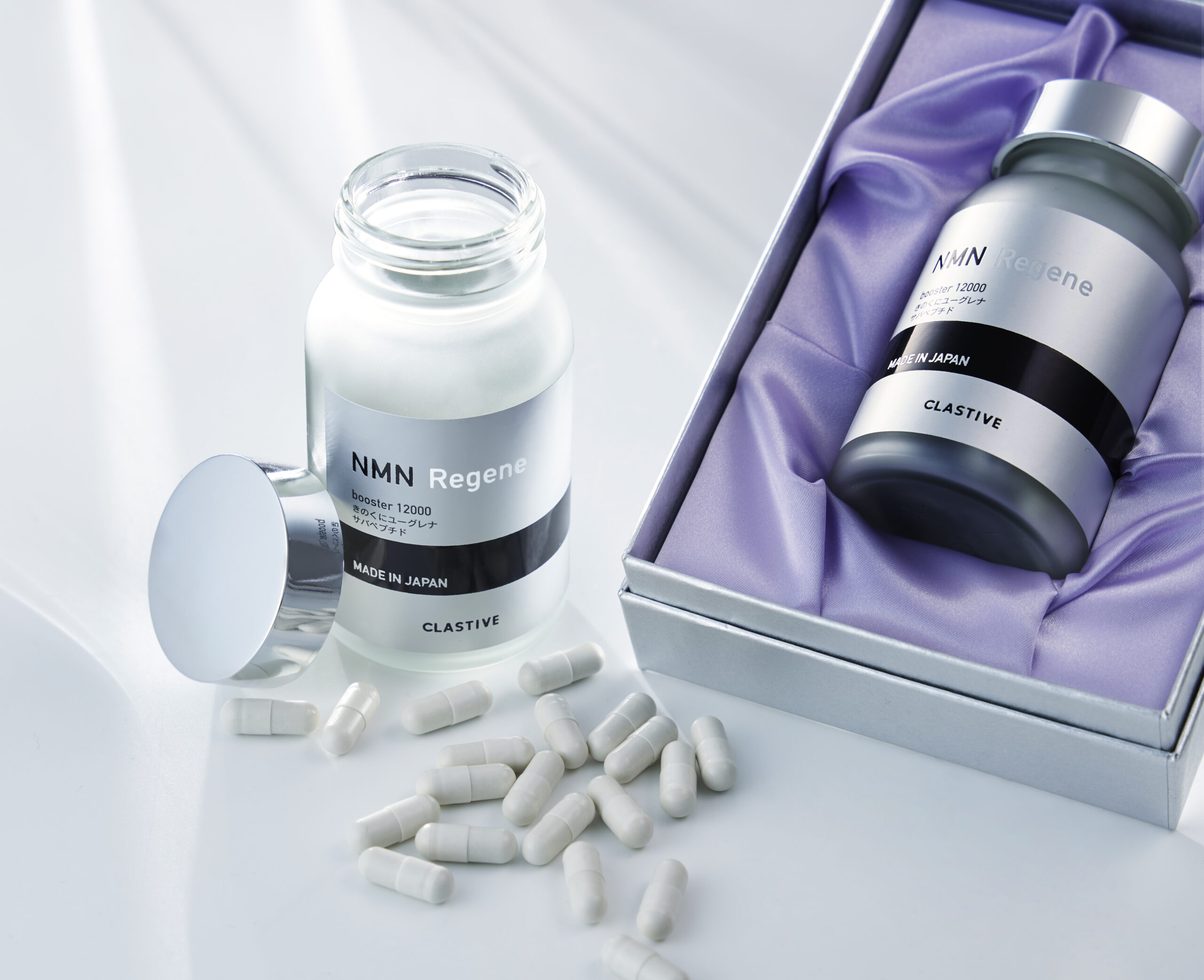 Với sự thành công vượt mong đợi của PURE NMN 12,000MG+, các nhà nghiên cứu của Clastive đã tìm ra công thức cải tiến mới và cho ra mắt dòng NMN Regene thế hệ mới, với thành phần chính là NMN cùng sự kết hợp của các dưỡng chất quý như Kinokuni Euglena, Peptide cá thu Nhật Bản, Coenzyme Q10 và Resveratrol, NMN Regene không chỉ làm chậm quá trình lão hóa, da căng mịn, sáng khoẻ mà còn giúp đưa cơ thể về trạng thái hoàn nguyên tinh khiết, chăm sóc chuyên sâu, giúp hỗ trợ cải thiện giấc ngủ, ổn định tâm trạng và tăng cường trí nhớ, mang lại cảm giác khỏe khoắn, tràn đầy năng lượng.